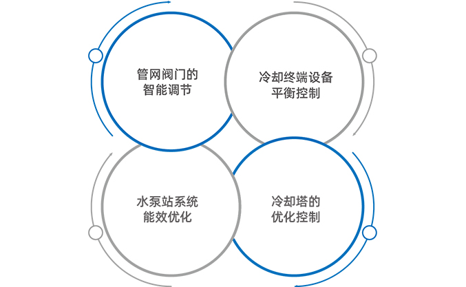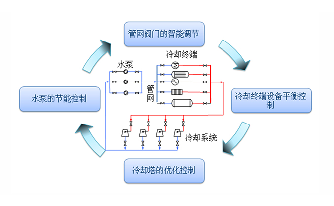 系统利用ZETA自主研发的WECS循环水系统综合节能优化运行技术,,,,集成先进的节能控制方法并结合智慧阀门、、、智慧能源、、、、工业变频等技术,,对循环水系统各单元优化控制,,,,提高整体能效水平。。